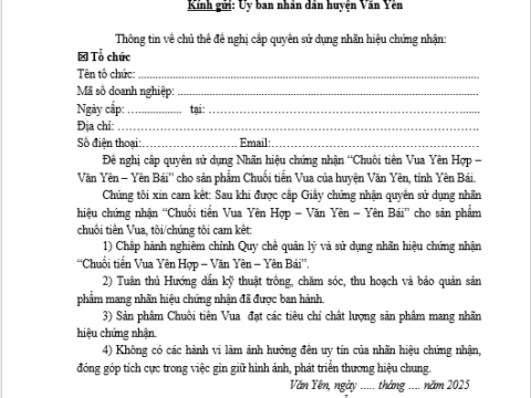 NỘP HỒ SƠ ĐĂNG KÝ CHỨNG NHẬN “CHUỐI TIẾN VUA YÊN HỢP”
